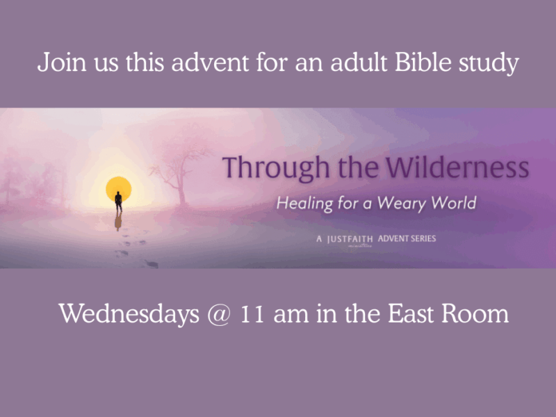 Join us this Advent season as we journey together using JustFaith Ministries’ Through the Wilderness program. Each week, we’ll explore scripture, reflection, and conversation that help us prepare our hearts for the coming of Christ.
