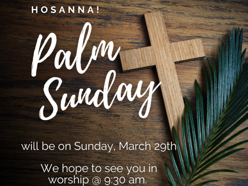 Children and youth are invited to participate in our traditional Palm Sunday processional during worship as we celebrate Jesus’ triumphant entry into Jerusalem and begin Holy Week together.
